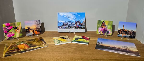 A5 cards, printed on glossy card, blank inside with an envelope provided.